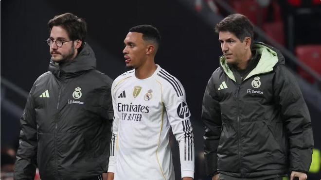 据报道,阿诺德在第53分钟因左大腿前上部的疼痛而下场,在一次长传给基利安后,他立即感到不适并倒地,这对哈维-阿隆索来说是个不小的打击,因为他的右后卫位置上无人可用,卡瓦哈尔仍在养伤。